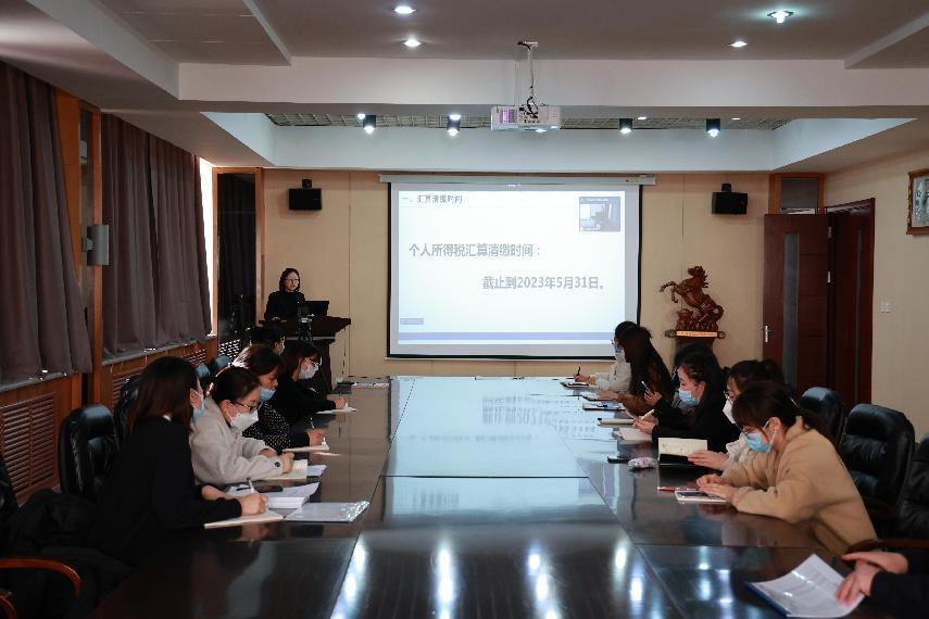 2023年3月22日下午,财务处开展2022年个人所得税汇算清缴操作专项培训,由胡思霞老师主讲,会议采用线下线上相结合的方式召开。