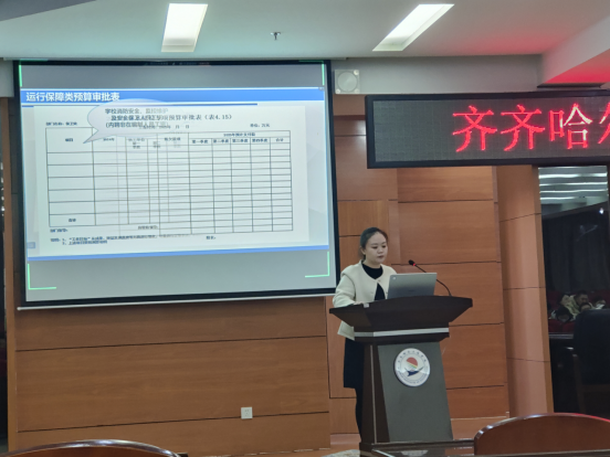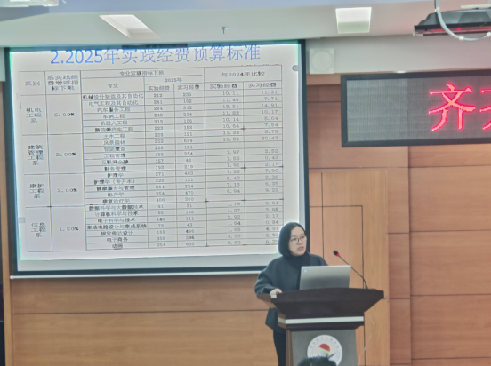 会上,学校理事姜岩和财务处王瑜分别从2025年预算编制总体情况和具体填报解读两个方面进行详细讲解。
